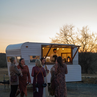 The design paired textures — leather, wood and stone — with delicate details like bentwood chairs and airy linens. A deconstructed dining table with suspended florals, like a floating chandelier, set the stage for a winter wine dinner in February and, later, an April bridal session featuring real couple Alexandra and Brian (and their two Aussie pups).